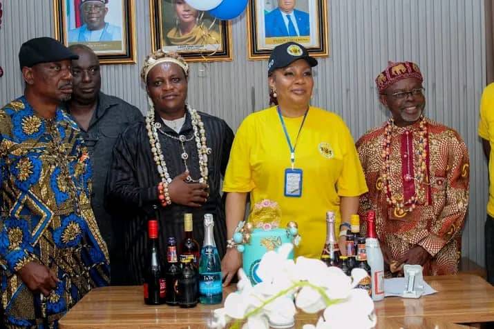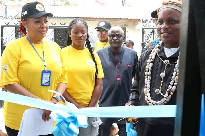 Official inauguration of BCAF HOUSE by the Paramount Ruler of Etinan His Royal Highness Edidem A. M. Akpanobong flanged by the President Lady Ann Sagbe and other dignitaries.